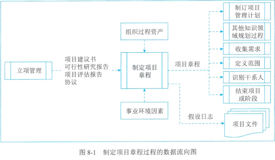 | 制定项目章程 | 项目章程、假设日志 | 专家判断、数据收集、人际关系与团队技能、会议 | 立项管理文件、协议、事业环境因素、组织过程资产 |