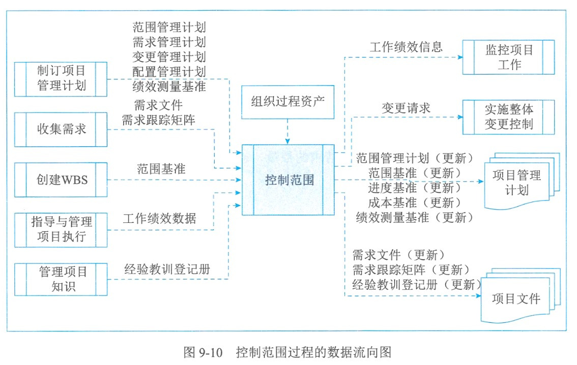 | 控制范围 | 工作绩效信息、变更请求、项目管理计划更新、项目文件更新 | 数据分析 | 项目管理计划、项目文件、工作绩效数据、组织过程资产 |