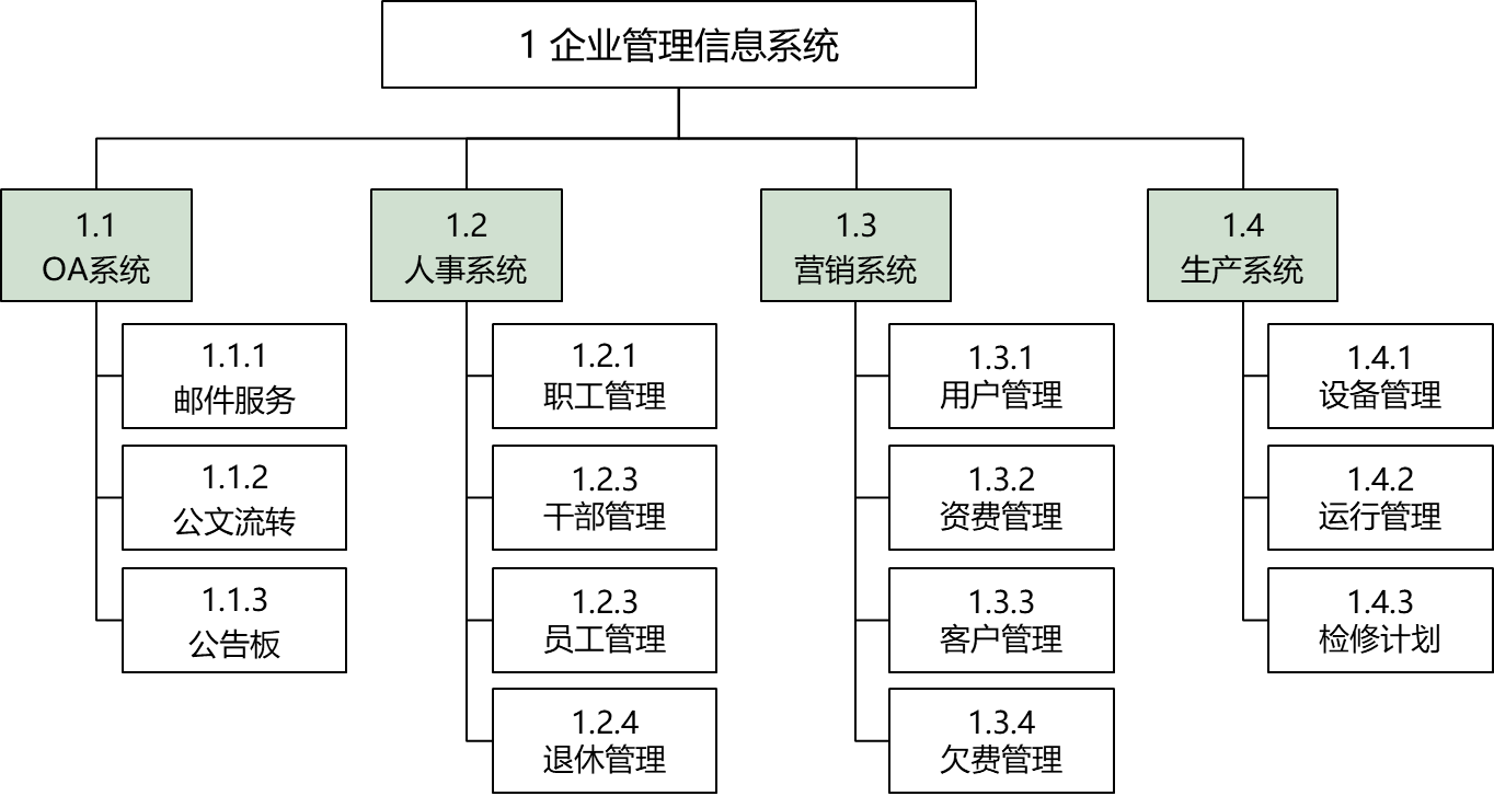 2、以主要可交付成果作为分解的第二层。