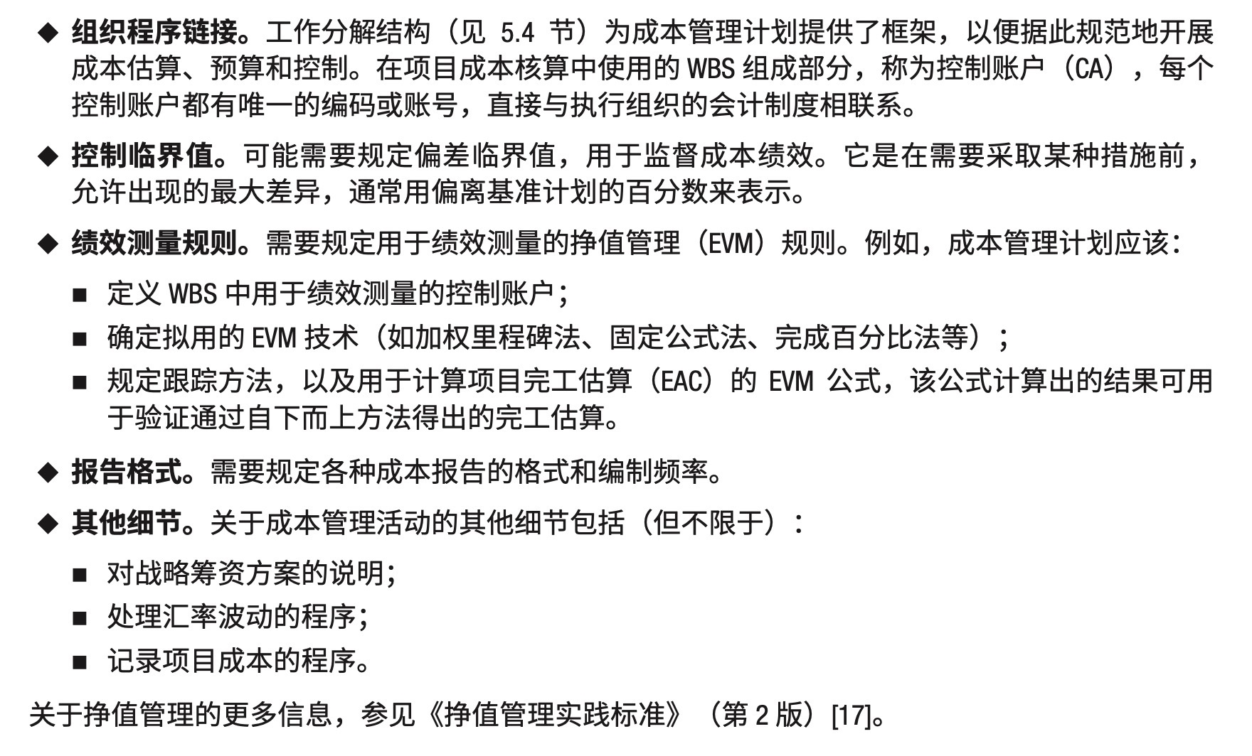主要作用是,在整个项目期间为如何管理项目成本提供指南和方向。
