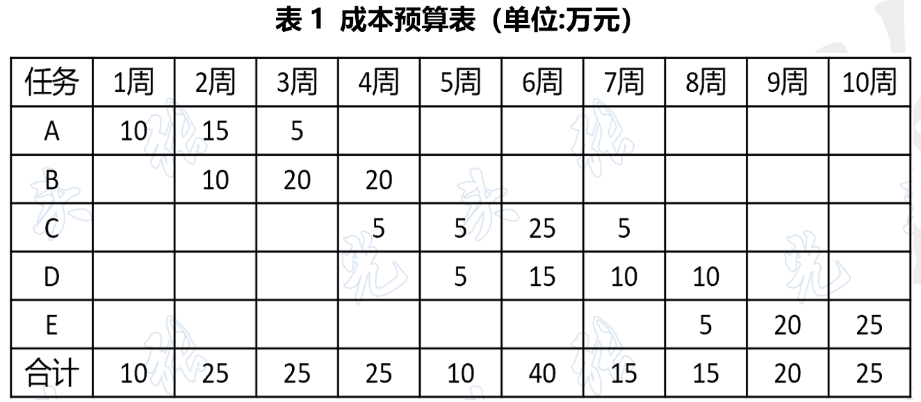 1.1各任务的预算。A-30万,B-50万…