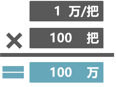 设盈亏平衡点为x次,则:2500x=500000+2000x,x=1000