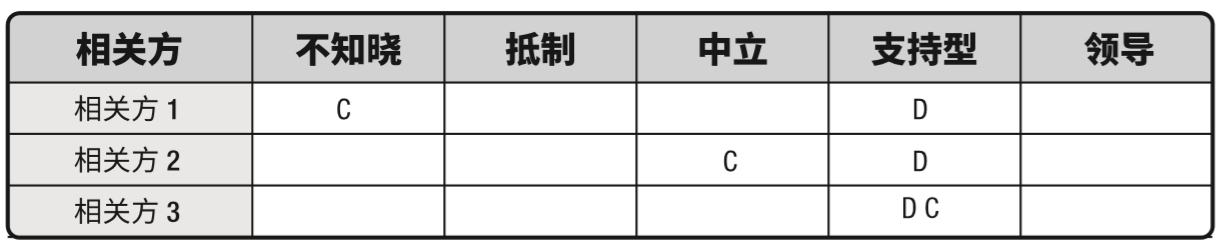 | 干系人管理 | 识别干系人 | 规划干系人参与 | 管理干系人参与 | 监督干系人参与 | / |