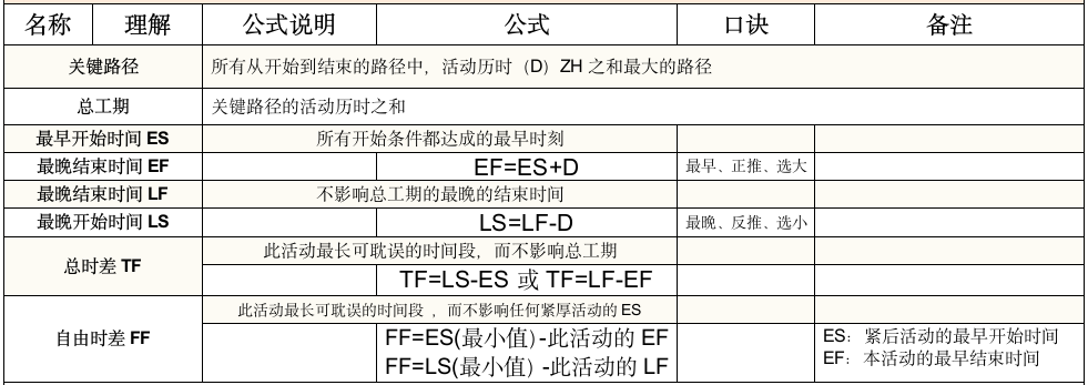 | 进度管理 | / | 规划进度管理 定义活动 排列活动顺序 估算活动持续时间 制定进度计划 |
